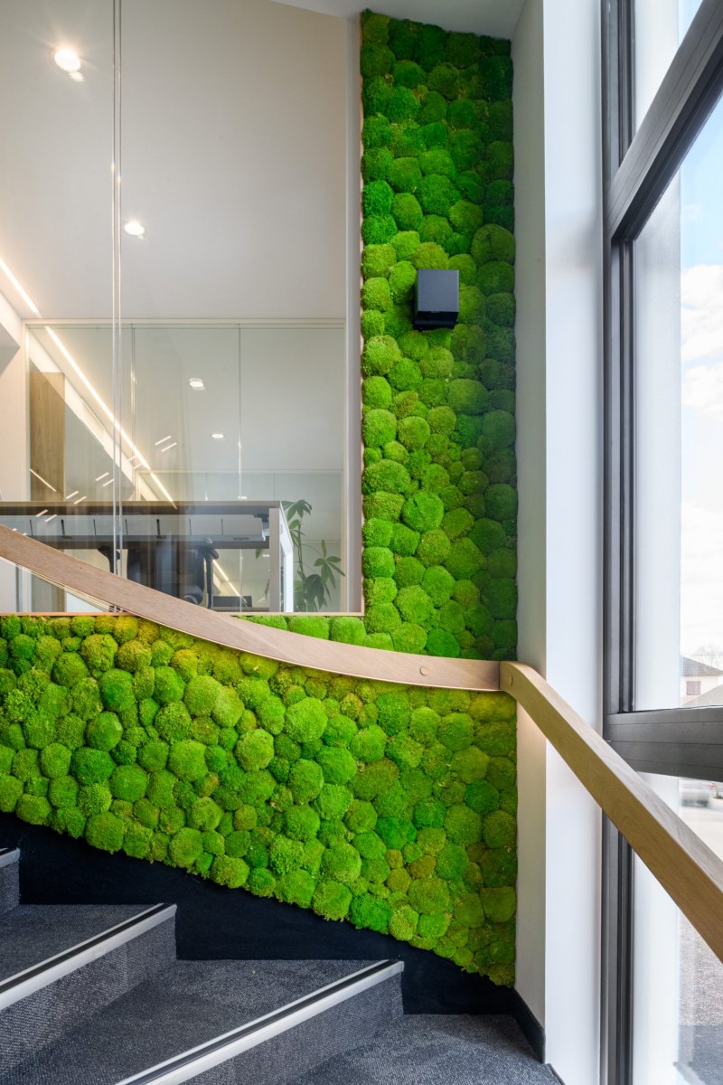 Projet d’aménagement intérieur d’une agence immobilière visant à optimiser la distribution et à offrir une identité aux locaux. Le parti-pris retenu a été une palette de matériaux naturels dont le bois utilisé pour le mobilier sur mesure et pour les claustras bois qui viennent rythmer les espaces ainsi que le végétal stabilisé utilisé sur un mur accent visible depuis l’accueil et l’ensemble de la cage d’escalier.