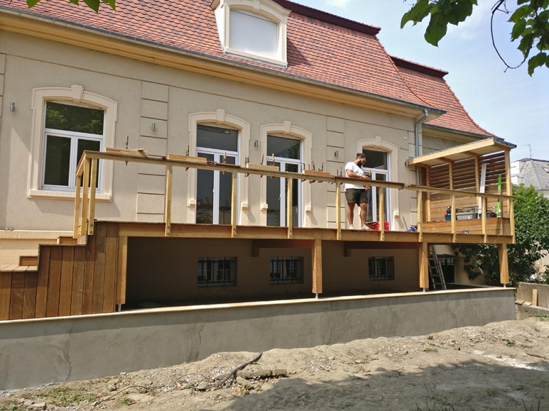 Chantier en cours de finition pour ce projet de rénovation lourde d’un hôtel particulier à Strasbourg. Les travaux intérieurs d’aménagement, de décoration et de redistribution des espaces sont déjà terminés. La rénovation de la toiture est achevée également, on apporte maintenant les dernières finitions sur la structure de terrasse en bois créée dans le cadre du projet. En effet, la maison ne bénéficiait auparavant d’aucun accès direct au jardin. Nous avons donc fait une proposition s’harmonisant avec le caractère historique de la maison, en accord avec l’Architecte des Bâtiments de France.