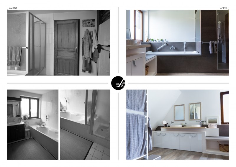 Le premier chantier de l’agence EK Architecte est achevé ! C’est un projet d’architecture intérieure de rénovation et de décoration d’une salle de bains. La pièce a été transformée en un espace chaleureux et contemporain utilisant des matériaux naturels. L’ambiance sobre et épurée met en oeuvre un contraste de blanc et de gris soutenu réchauffé par des touches de bois brut.